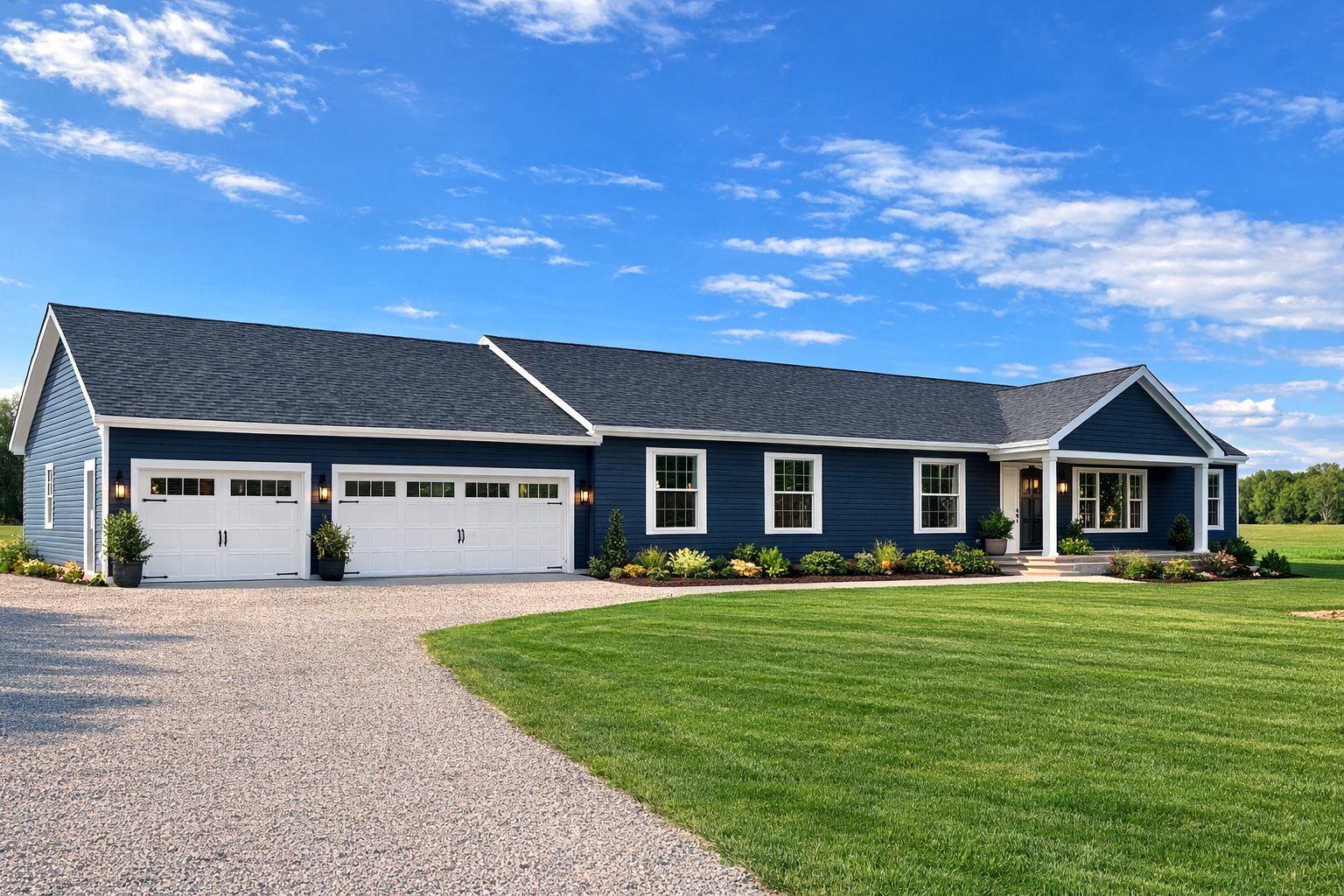 Where to even start when describing this monster of a modular home?? Four bedrooms, three full baths, and gobs of kitchen cabinets (island is optional) to get things started. From there we’ve got to mention the separate family room and living room: no more fighting over the couch! Of course, Mom and Dad get to relax in their own separate getaway room attached to the master bedroom anyway, so let the children play. A full corner garden tub and separate walk-in shower round out the fantastic master suite in this large modular home that was built with big families in mind.